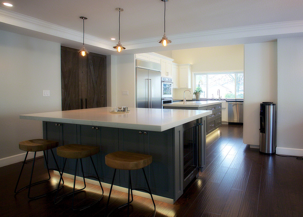 Before this kitchen turns to be blue and contemporary, it used to be traditional and crowded kitchen remodel. Before this kitchen turns to be blue and contemporary, it used to be traditional and crowded.