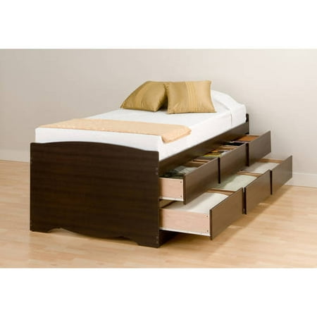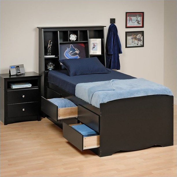 Prepac captain's platform storage bed with 6 drawers, twin, black. Make your bed the most versatile piece in your bedroom with the queen mate's platform storage bed with 6 drawers. The practical design of this platform storage bed combines extra deep drawers for plenty of storage space with a wood slat support system intended to distribute body weight evenly and minimize the amount of motion transfer. Product is made from a mixture of composite woods with a laminated finish. Prepac black twin bed headboards & footboards. With six 18 deep drawers that can be installed on either. Wood slats positioned lengthwise distribute body weight evenly and minimize the amount of motion transfer. With the tall queen captain's platform storage bed with 12 drawers, you'll gain, not lose, storage space in your bedroom. Imagine how much more storage space youâ??d have with the tall twin captainâ??s platform storage bed with 6 drawers. Prepac black coal harbor full mates platform storage bed with 6 drawers. Give your kid's room a timeless style while adding some storage space! Drawers have plywood sides and metal drawer runners; Product is made from a mixture of composite woods with a.