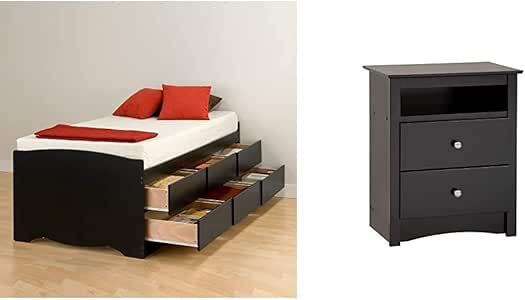 Prepac mate's platform storage bed with 3 drawers, twin, black & astrid twin headboard, black. Coordinate with other prepac bedroom furniture. Metal runners with safety stops keep drawers in place. Six 18 deep drawers can be positioned on either side of the bed. Your purchase includes one prepac platform storage bed with 6 drawers, in twin size | mattress not included.